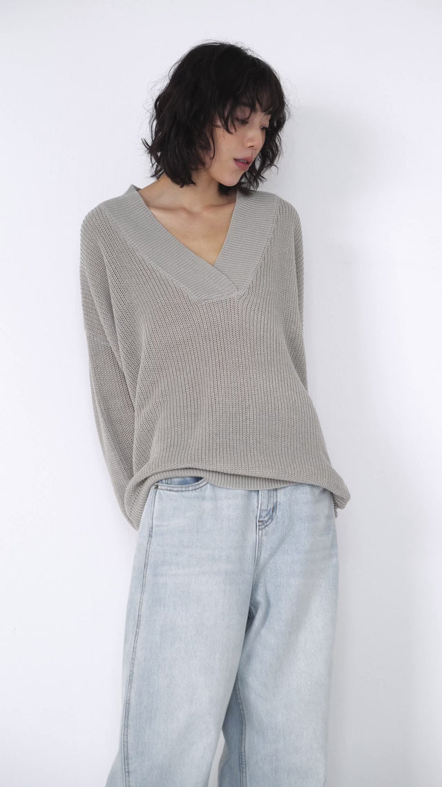 Oversized 交疊V領針織衫 (裸灰)