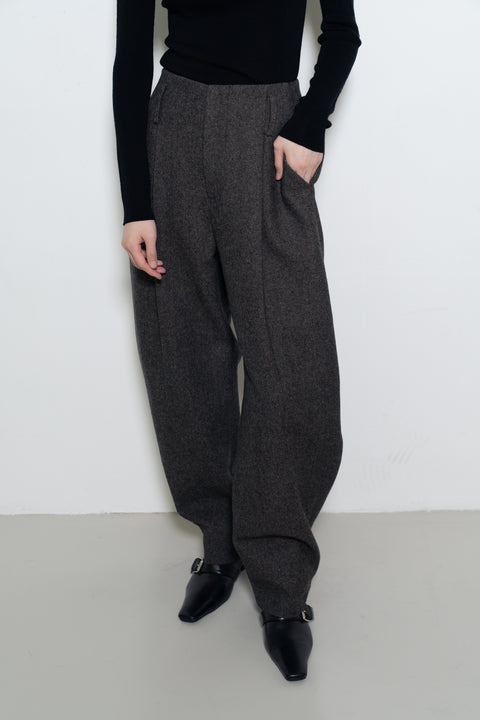 高腰錐形褲型,單褶增加臀腿空間,線條俐落不緊繃。