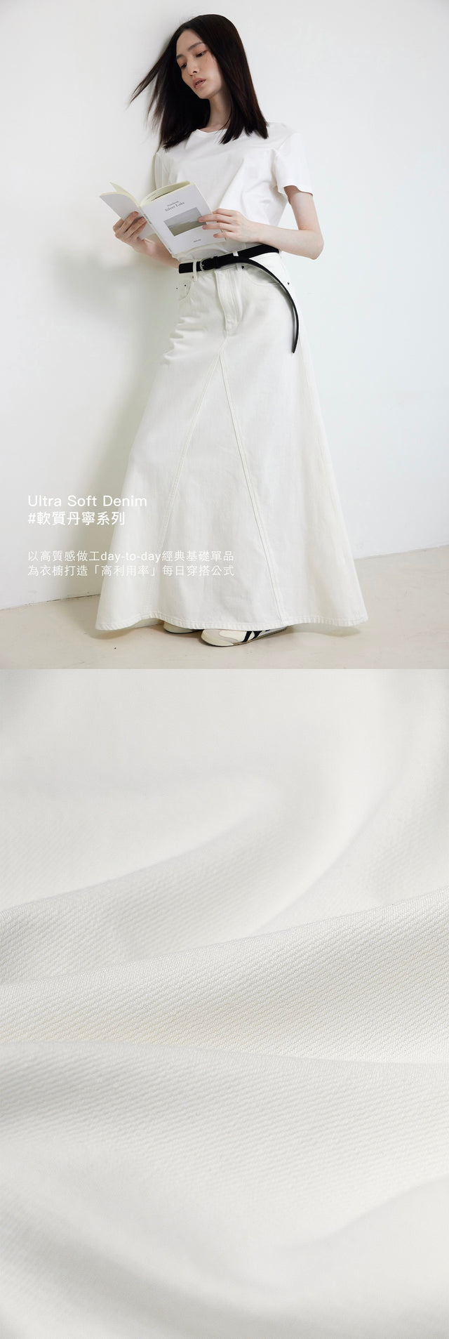 Ultra Soft 不顯臀舒適全長丹寧裙 (柔白)