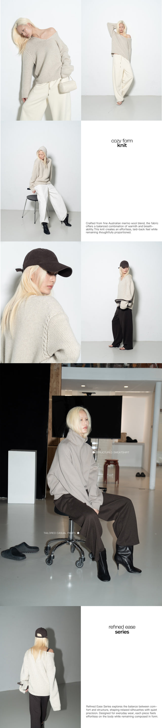 Premium Seamless Wool Knit Sweater - U-Neck (Black)