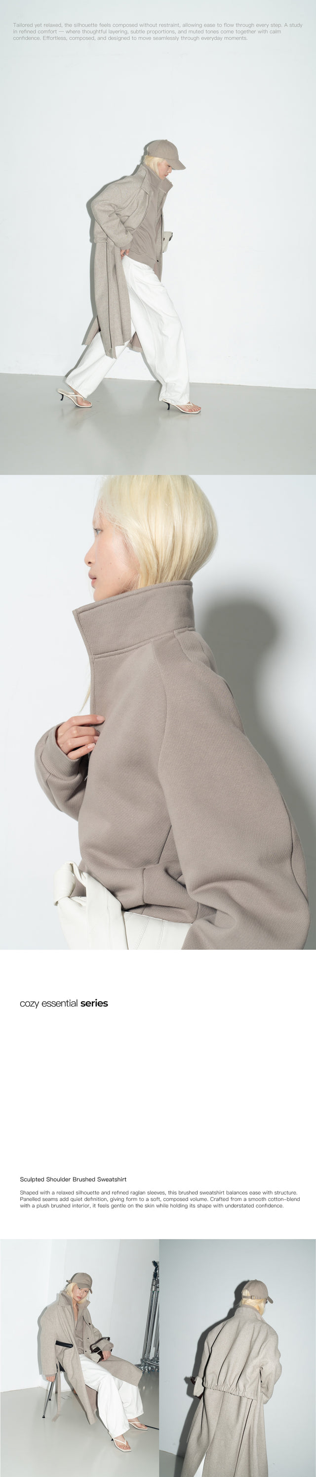 Unisex Soft Fleece Sweatshirt with 3D Shoulder Cut (Grey/Nude)