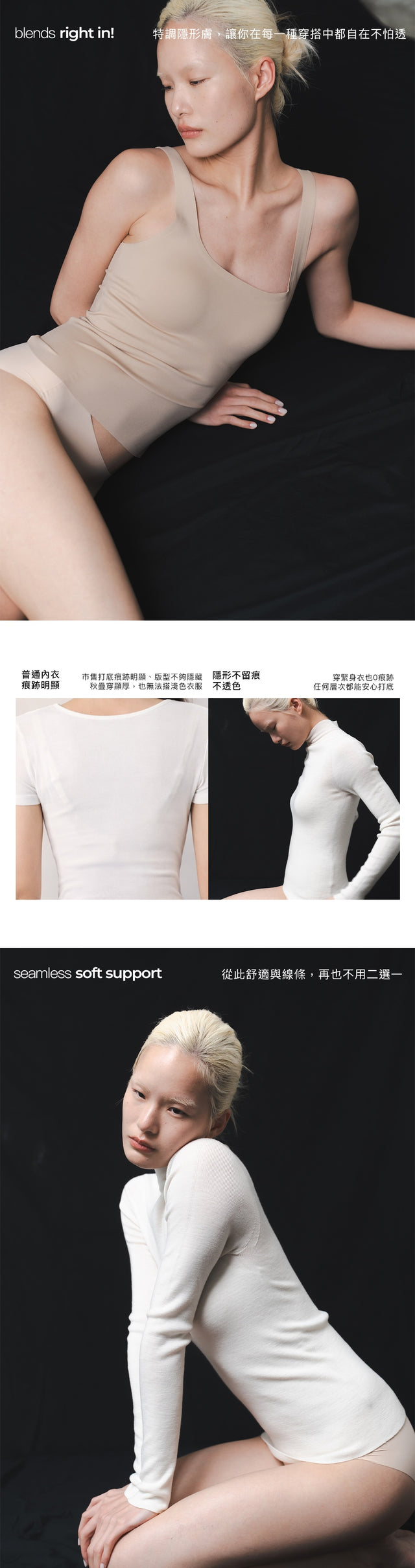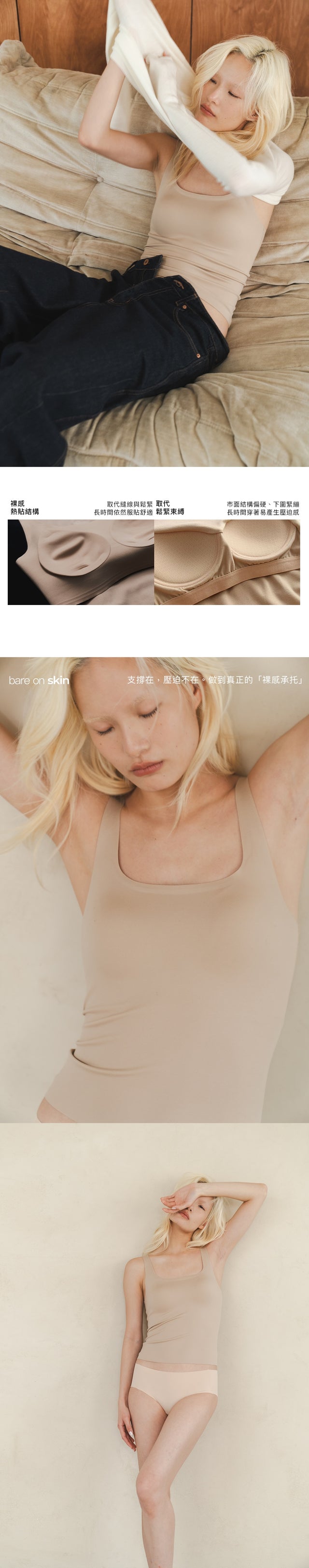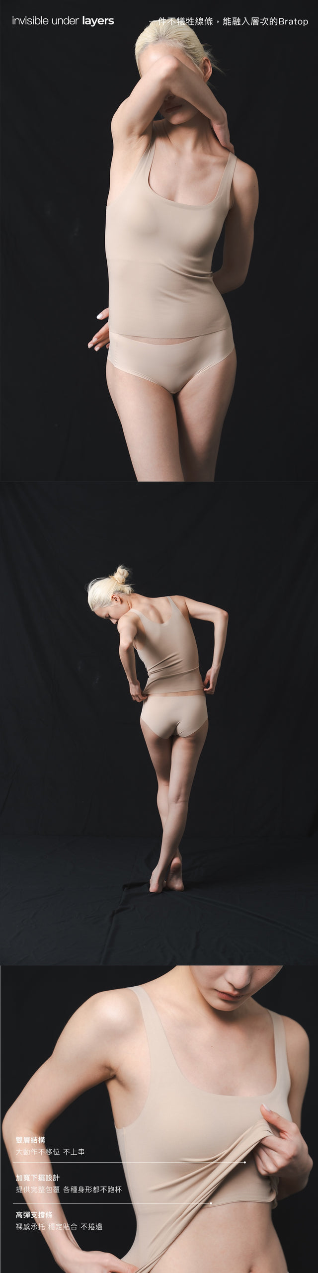 Seamless, non-contact, temperature-regulating bratop (invisible skin)