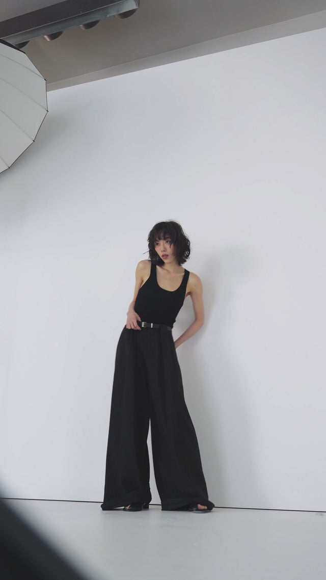 筆挺俐落立體工字褶,向腰部延伸結合褲耳設計,視覺延伸腿長
